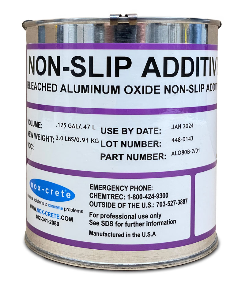 Non-Slip Additive is recommended for pool decks, steps, patios, exterior walkways and garage floors sold in 1 Qt Can.