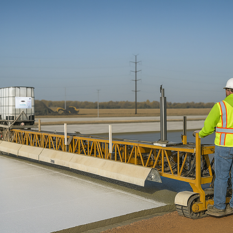 A highly reflective white pigment reflects the sun’s rays to keep the concrete surface cooler and reduce heat buildup for maximum strength development.