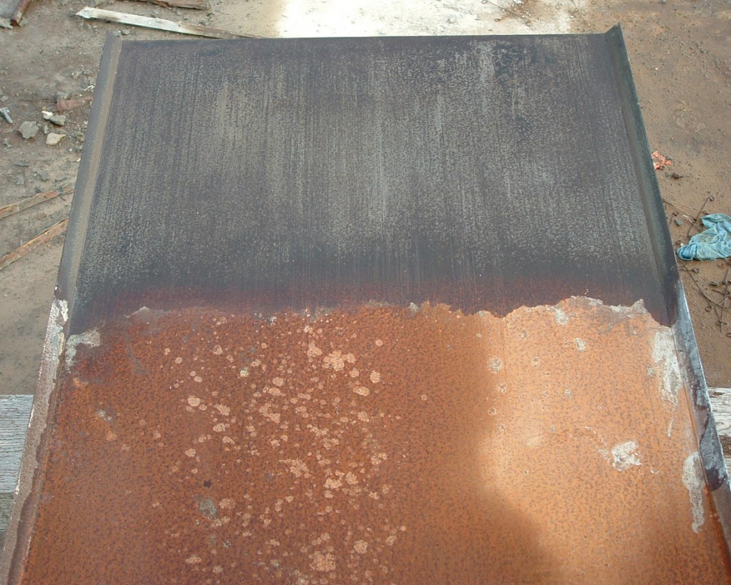 Rust remover for steel forms prevents flash rusting.