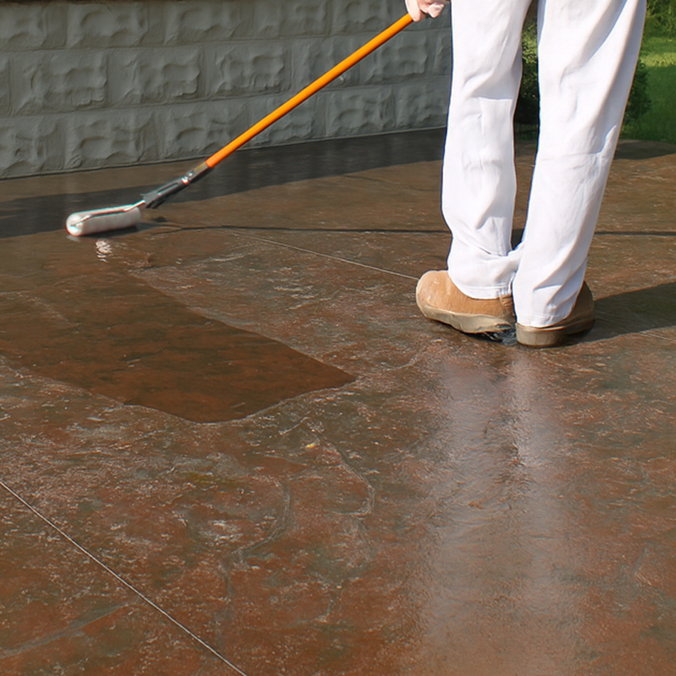 Restore the original gloss and/or repair white spots on decorative concrete with clear acrylic sealers.